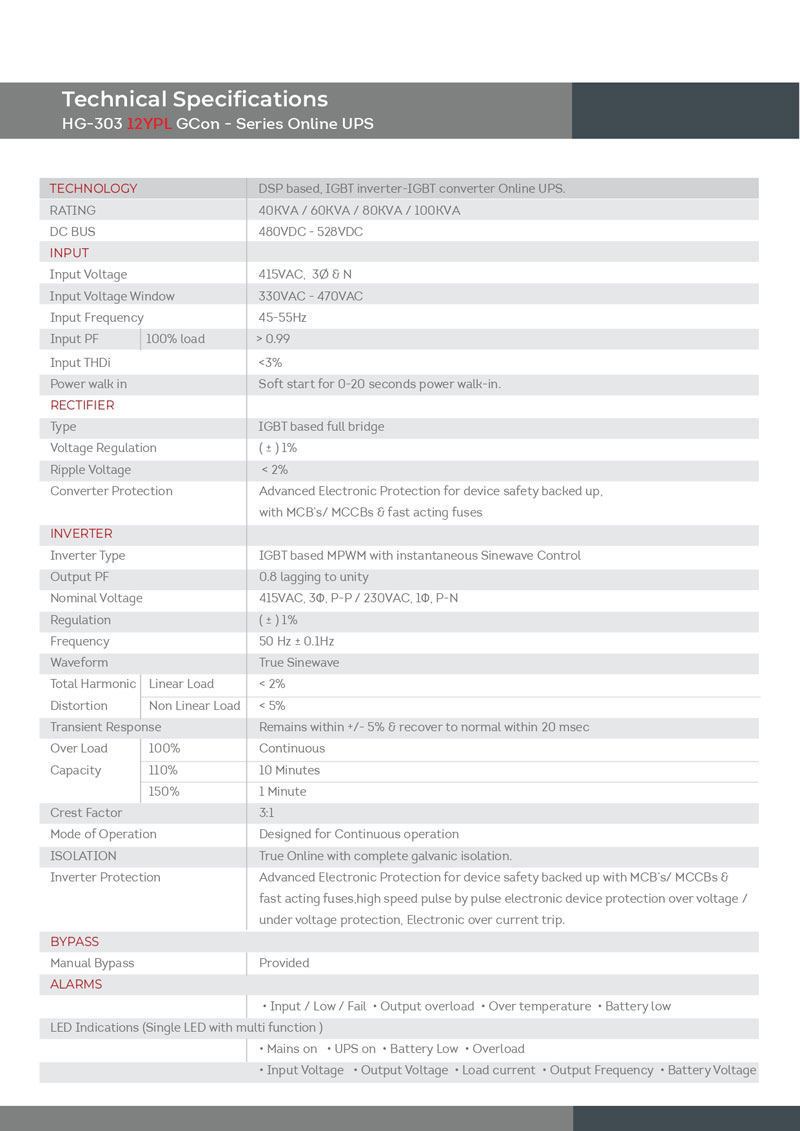 - Unity PF, high efficiency Online UPS